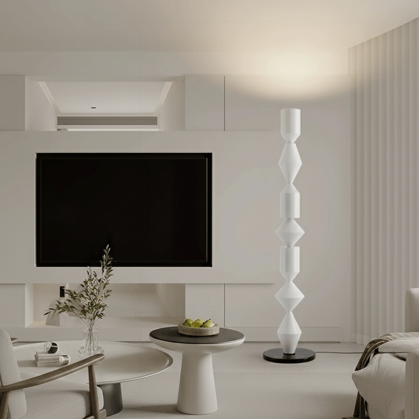 A statement of modern artistry, the Obelisk Floor Lamp combines geometric precision with architectural elegance. Inspired by ancient monolithic structures, its stacked, sculptural form creates a striking visual impact in any space. Crafted with a sleek matte finish, this lamp seamlessly blends into contemporary interiors while adding a bold, artistic touch. Whether placed in a living room, office, or gallery-style setting, the Obelisk Floor Lamp stands as a beacon of sophistication and design excellence.