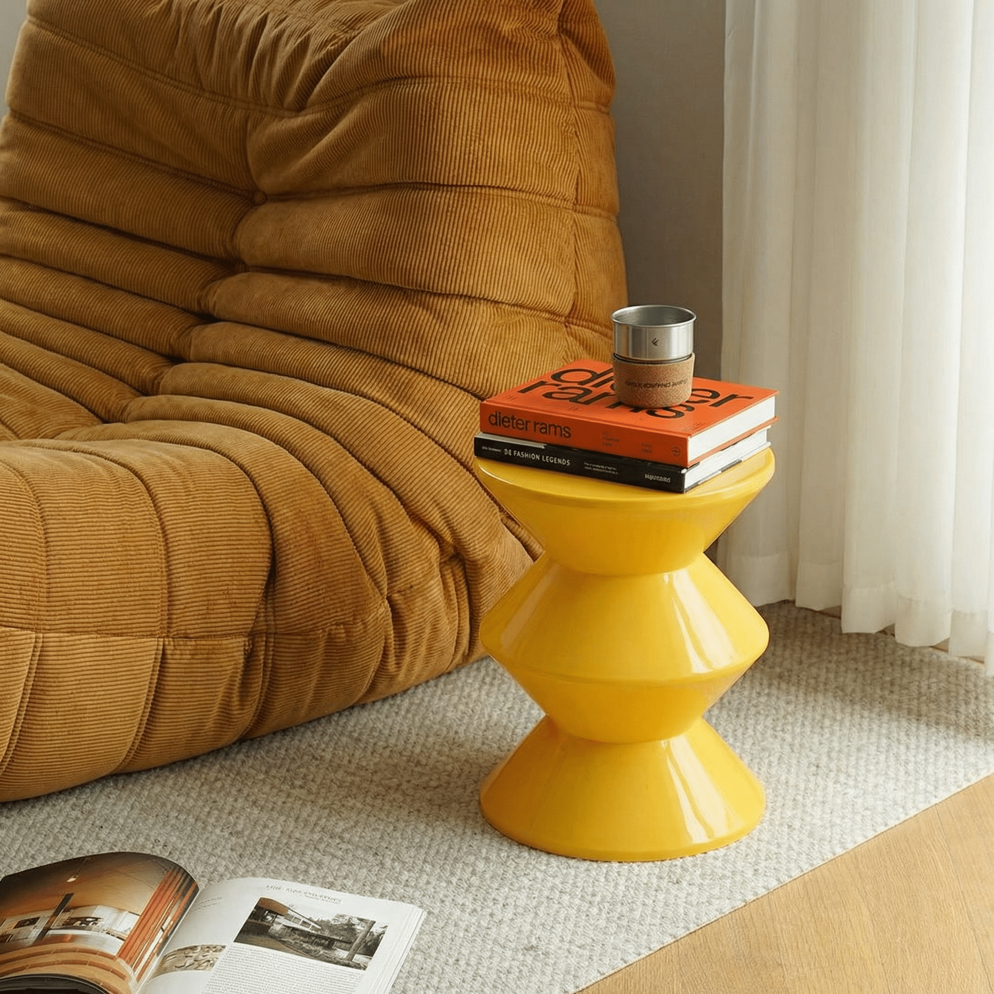 Introducing the Mod Prism Side Table, a bold blend of geometric design and functionality. With its vibrant orange hue and striking prismatic shapes, this table stands out as both a decorative accent and a practical surface. Featuring interconnected cones, its unique silhouette adds modern sophistication and versatile functionality, perfect for displaying decor, holding beverages, or keeping essentials within reach.